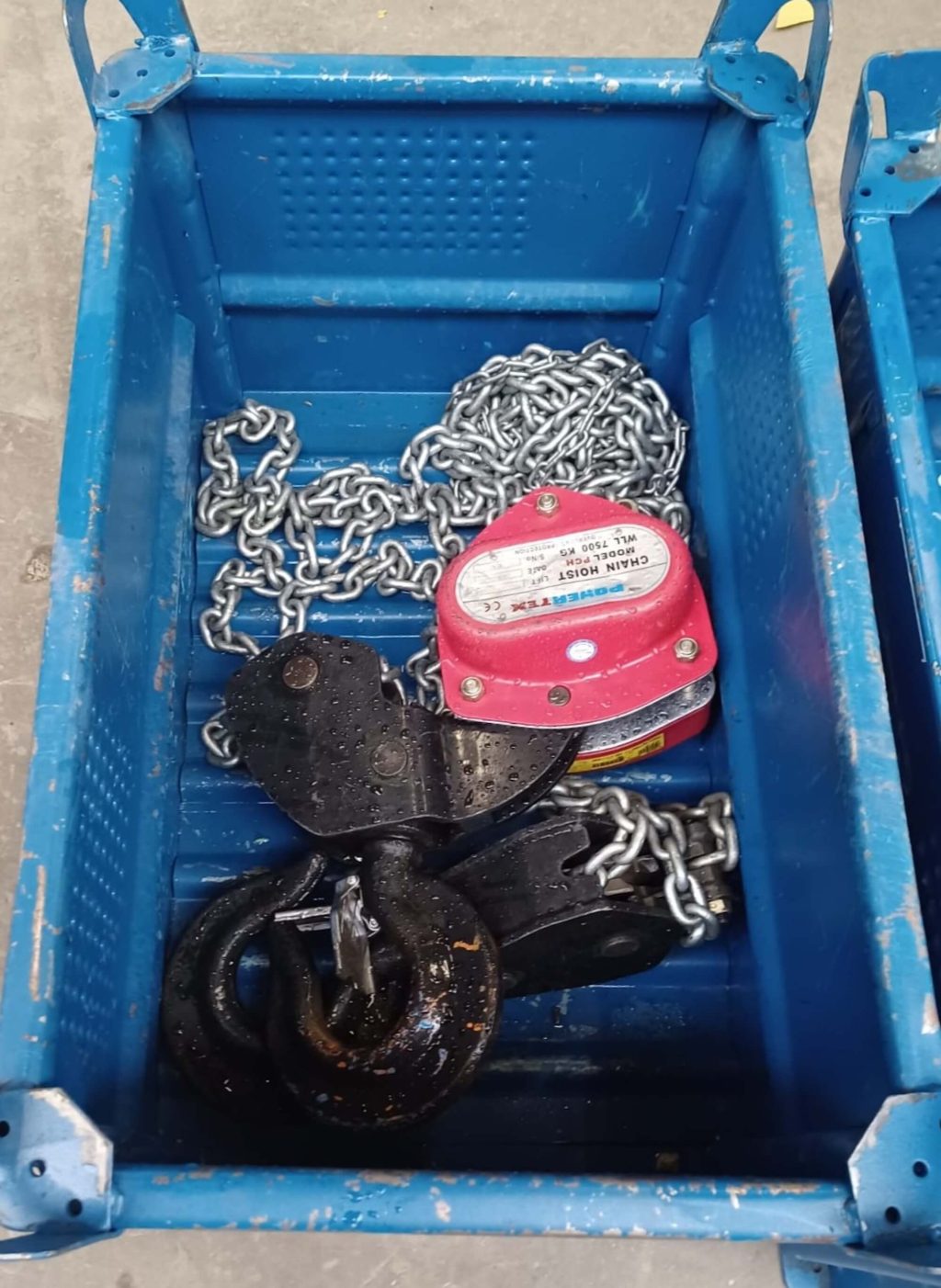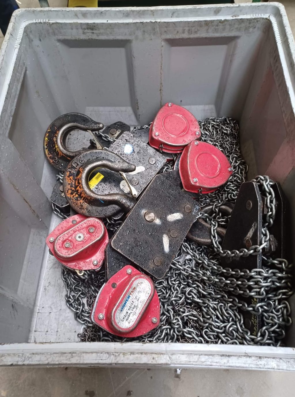 Een bijzonder onderdeel van deze keuring waren de kettingtakels. Een aantal van deze takels hebben een maximale werklast van maar liefst 20 ton. Dit soort takels kom je in de praktijk niet dagelijks tegen. Het keuren en beproeven ervan vormt daarom altijd een mooie uitdaging.