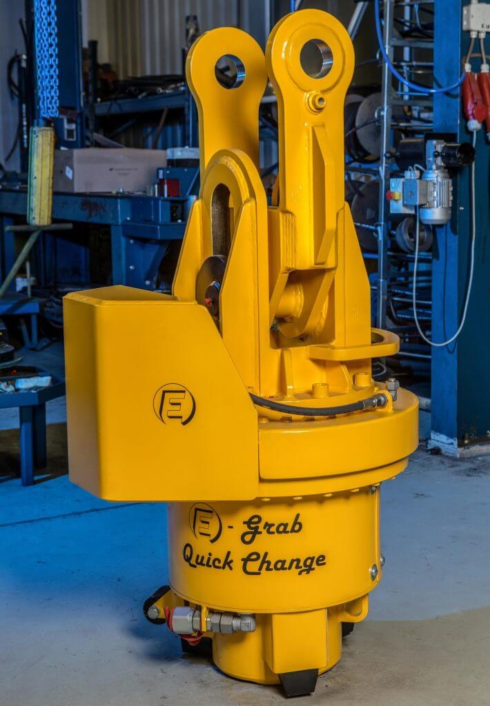 In 2003 hebben we “E-grab” geïntroduceerd. De E-grab is ontstaan vanuit de vraag binnen onze eigen groep naar snelwissels voor overslagkranen. De E-grab lijn bestaat uit snelwisselsystemen en hydraulische attachments.